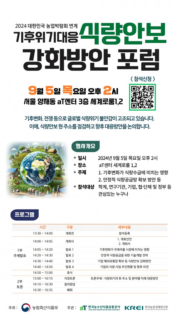 식량안보 강화방안 포럼을 알려드립니다.